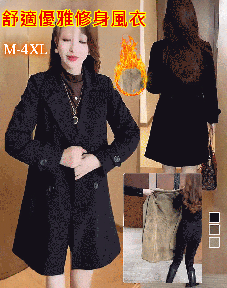 [1]加絨加厚 修身顯瘦【英倫風加絨風衣 一入組】NT$1198