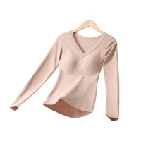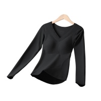 秋冬新款德絨保暖內衣女帶胸墊一體式加絨發熱磨毛打底秋衣
