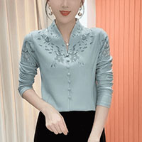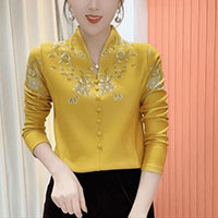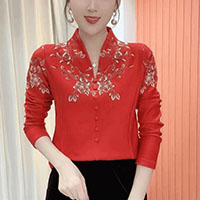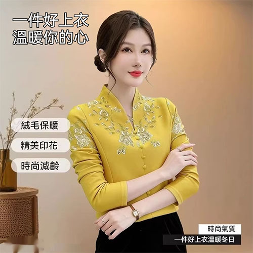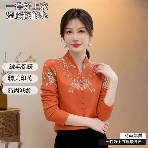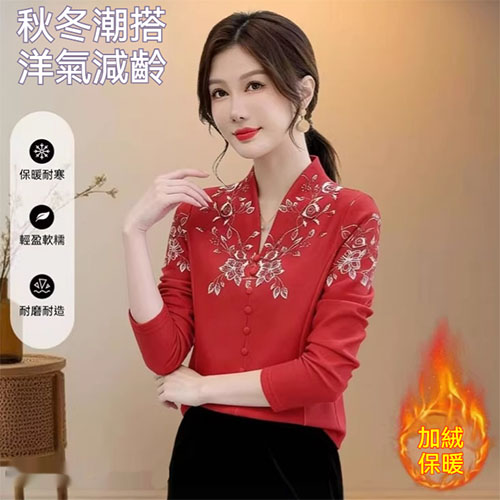 [1] 氣質V領印花加絨打底衫 冬季新款時尚百搭減齡顯瘦衫衣,1入組 NT$998