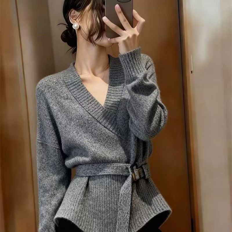 2025秋冬寬鬆顯瘦保暖時尚收腰V領針織衫,簡約百搭,不挑身材,不挑年齡,冬天必備!