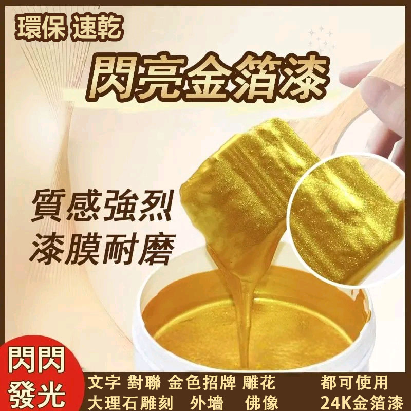 24K閃亮金箔漆,顏色鮮艷,閃亮光澤有質感,漆膜耐磨耐候,防水防曬 ,施工簡單,附著力強,快乾不變色!