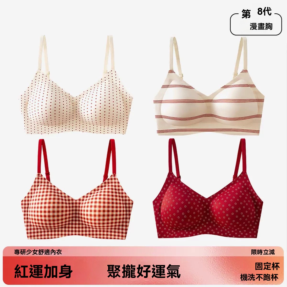 本命年新年紅色條紋碎花幸運文胸美女內衣提拉防下垂透氣舒適內衣